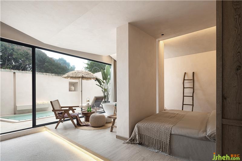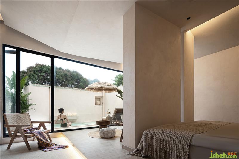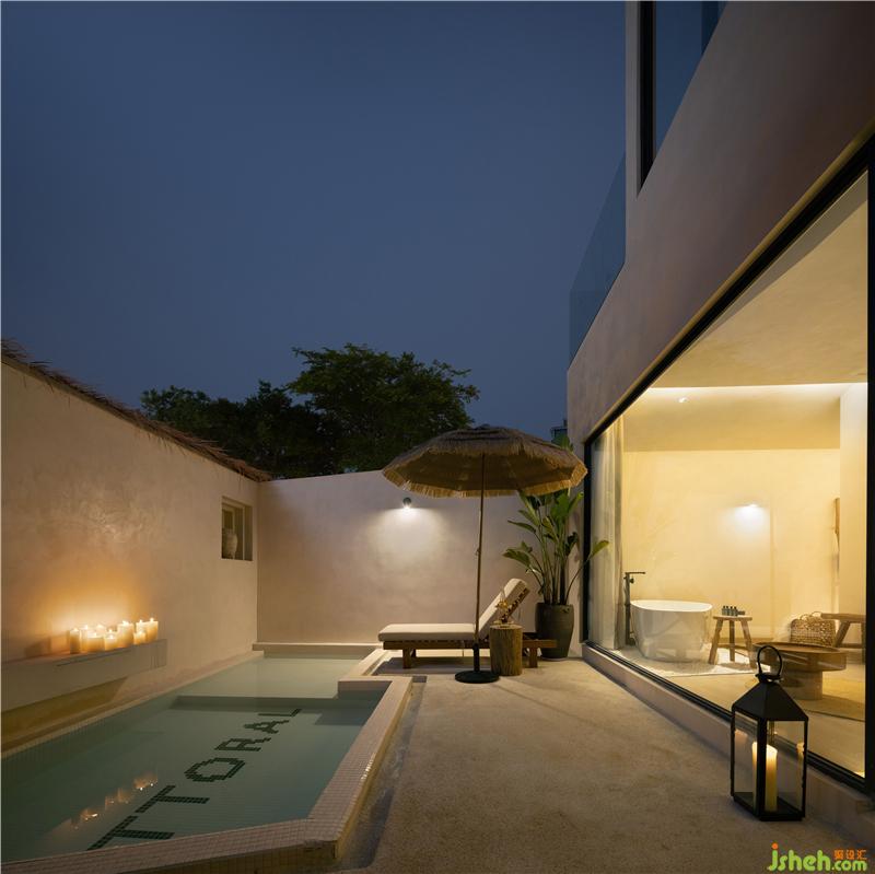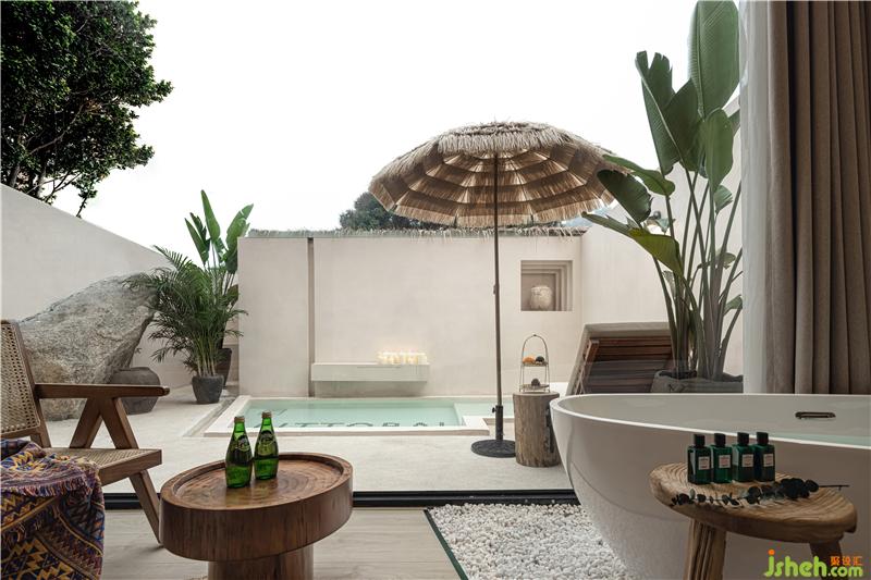 套房內(nèi)的獨(dú)立的院子與泡池,很好地隔絕了環(huán)境的干擾,享受極致的私人度假感廈門酒店設(shè)計。