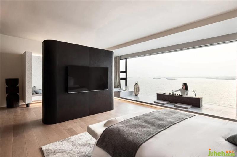 黑色盒子造型墻提取出集裝箱的概念,與原木色裝飾面做對比,在純凈的色彩之間,杭州酒店設(shè)計(jì)暖色的燈光與家具賦予空間以溫暖與自在。