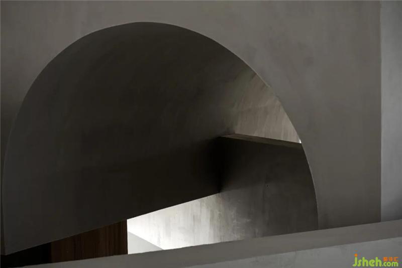 After observing the rolled-up state of ramie leaves, the designer integrated the arch structure into the space to add interesting points and shape sense to the space. The primary colors of wood and gray paint combine to create a plain tone, giving the color of nature.