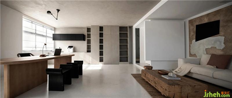 辦公室設(shè)計以樸素、自然的侘寂(wabi-sabi)為調(diào)性,展現(xiàn)了麻霖對東方美學(xué)的崇尚態(tài)度。