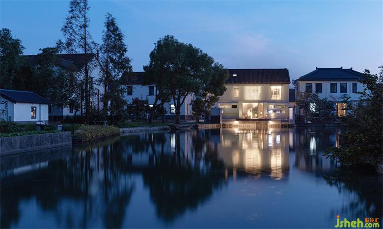 上海民宿設(shè)計(jì)鄉(xiāng)里宿共有三幢建筑,依水而建,與水為鄰。從蓮花的名字發(fā)散出水目、溪客、蓮境作為每一幢獨(dú)立建筑的名字。乘上江南水鄉(xiāng)的小船,便能慢悠悠地到達(dá)另一幢建筑里。