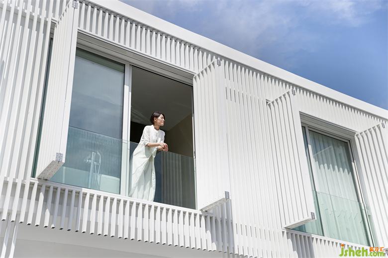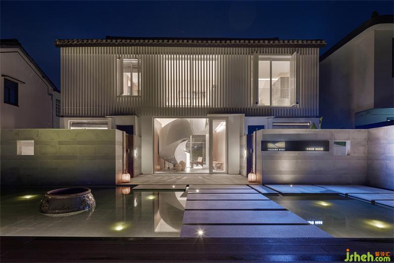 In order to unify the architectural style of the village with white walls and black tiles, the designer added a grille to the facade of the building to wrap the original building, which can protect the privacy of the internal space while being beautiful.