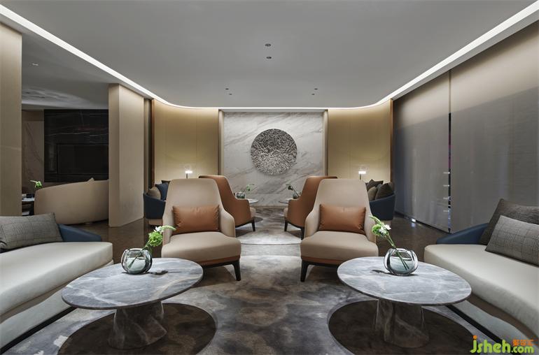 The embedded long light strip leads the moving line of visitors, like a flash of light shining into a cabin, with a strong sense of ceremony. Furthermore, the solid partition wall makes clients more independent in communication and not disturbed by the external environment.