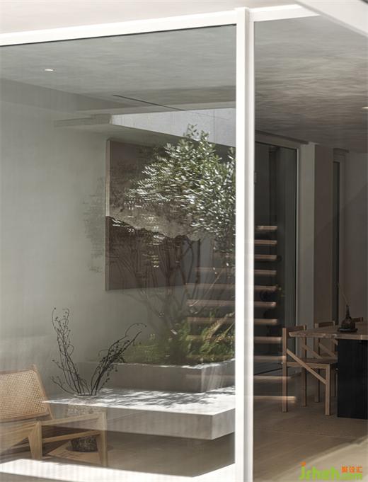 雕塑感的旋轉(zhuǎn)樓梯始終貫穿著整個住宅,如樹干般承載著空間的生長,光線進入室內(nèi),臺州別墅設(shè)計視覺感受被縱向拉長,打破沉悶的格局,因此更加自由與充滿力量感。
