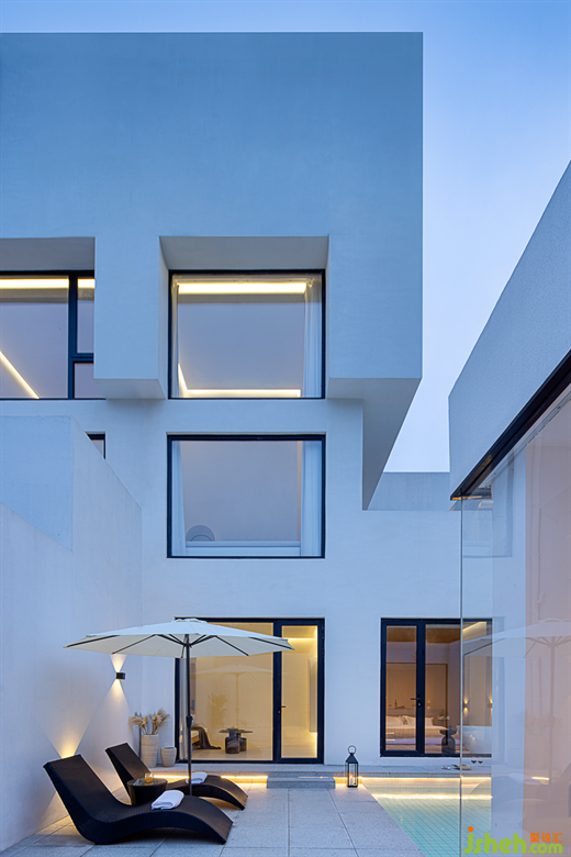 蘇州民宿設(shè)計師在功能性上加入了許多考量,以現(xiàn)代化的生活視角,增設(shè)酒吧、泡池、廚房等空間,進一步融入美好的度假體驗。