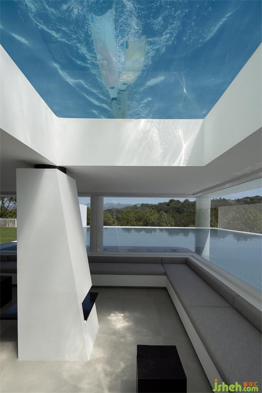 The pool acts as a medium connecting the inside and the outside, and the symbiosis of the space is further emphasized through the open volume allowing light to penetrate into the underground space.