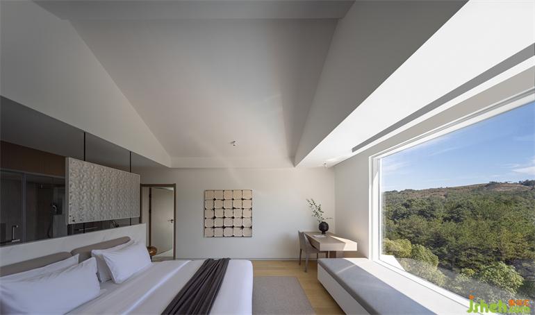 The choice of window orientation adds environmental considerations to the guest room, providing an excellent vantage point for observing the sunrise and sunset.