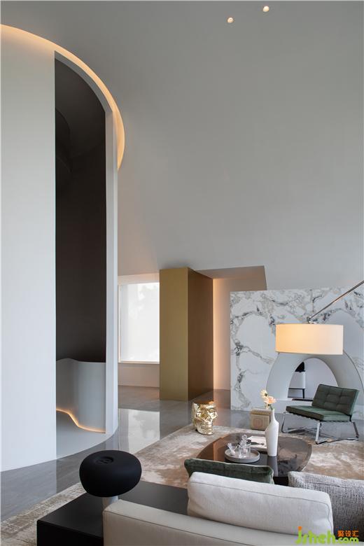 雕塑感的旋轉(zhuǎn)樓梯作為視覺的中心,