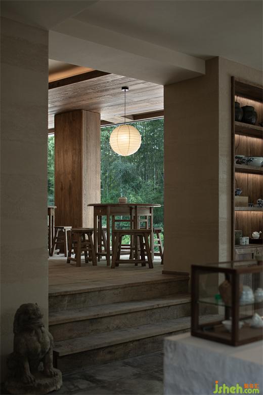 現(xiàn)代化的茶室設(shè)計手法最大限度地打開窗口,與周邊自然風(fēng)景形成互動,空間被重新梳理與重塑,形與意的美再次體現(xiàn)。