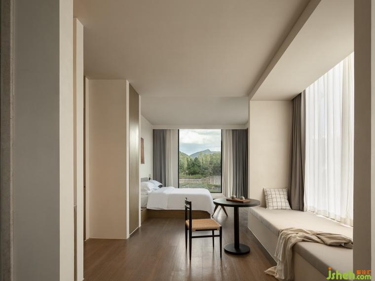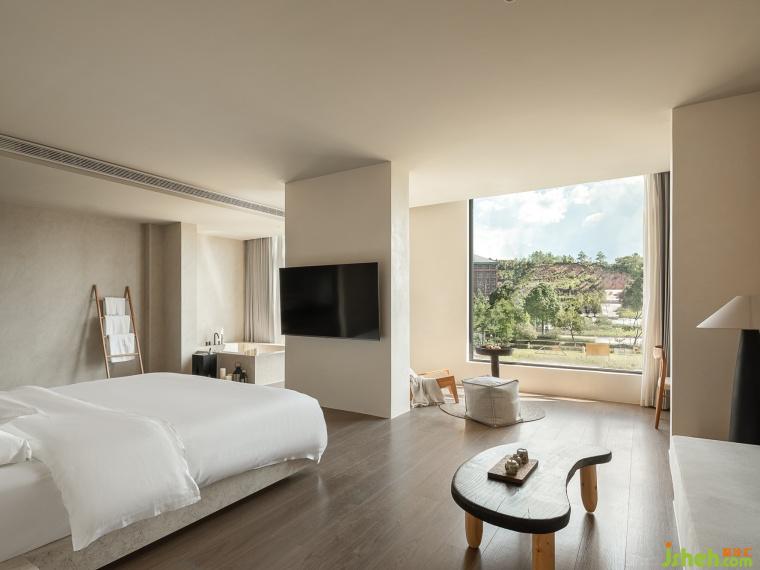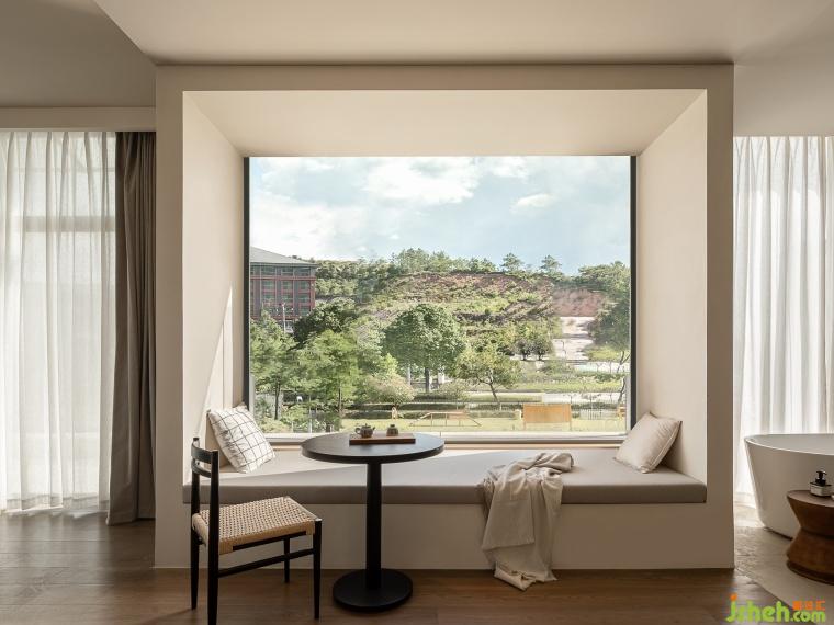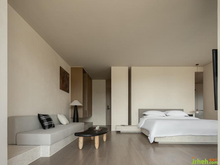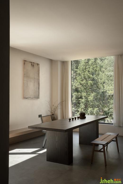 民宿設(shè)計(jì)??屏?背后,懸浮??茶空間,在這里,你可以與友人圍坐,品一杯香茗。古樸的屏風(fēng)將它與別的空間獨(dú)立開來,更添一份寧靜悠閑。