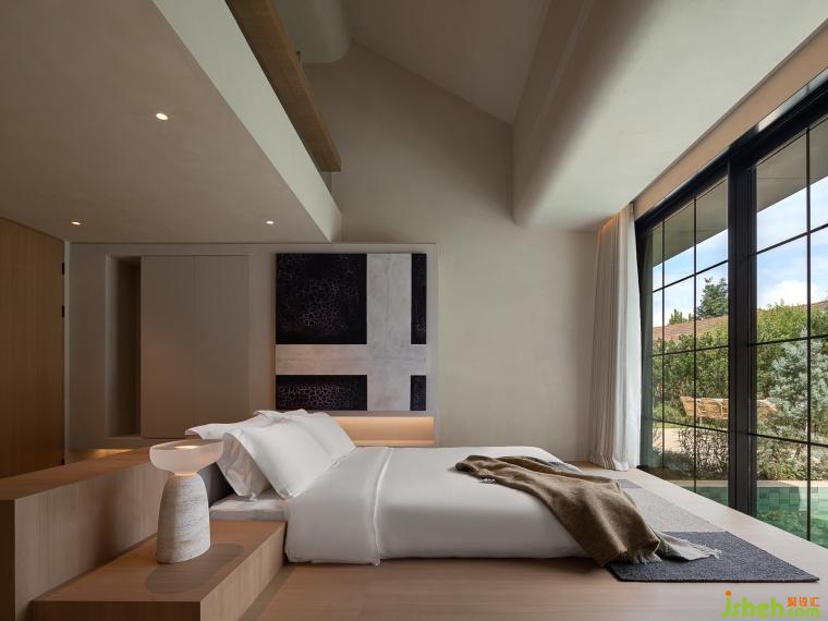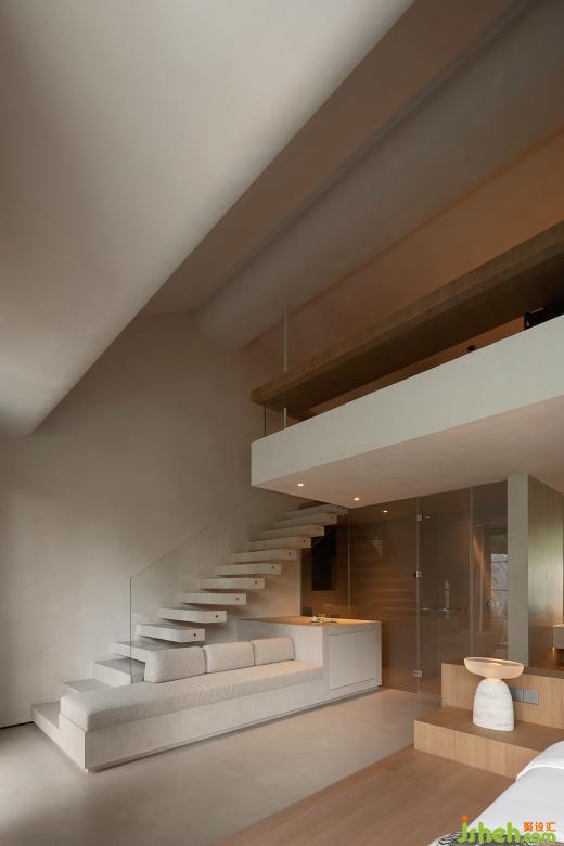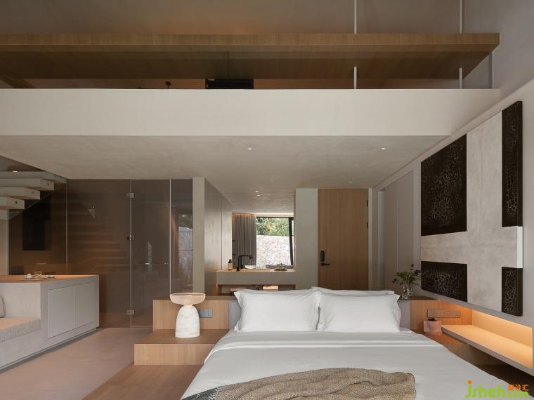 酒店設(shè)計(jì)要將坡屋頂特色與其他元素融合以彰顯南法莊園民宿風(fēng)格,設(shè)計(jì)師在建筑外觀上,使用大面積的米白色墻體搭配深灰色坡屋頂,形成鮮明對比,在視覺上增強(qiáng)了建筑的立體感與層次感。