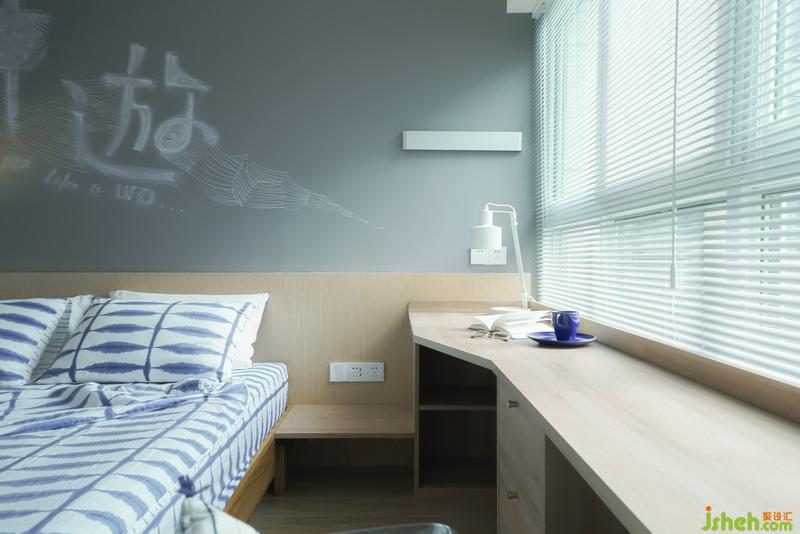 床頭是黑板墻,可以用無(wú)塵粉筆上面寫寫畫畫,床頭靠背是現(xiàn)場(chǎng)做的,可以發(fā)光,適合晚上打開窗邊是定制的寫字臺(tái),因?yàn)榫嚯x的原因做了不規(guī)則處理床頭柜是用的隔板,更符合整體氛圍整體空間也是做的無(wú)主燈設(shè)計(jì),壁燈+筒燈的處理,可以讓空間更簡(jiǎn)單