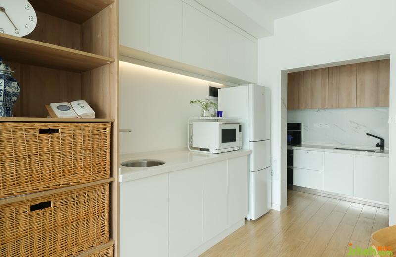 收納是這個(gè)家不變的主題,主人信奉‘?dāng)嗌犭x’的生活態(tài)度,半開放的廚房將西廚空間為之融合西廚的小盆子可以做一些沙拉,解決一些簡(jiǎn)單的食物處理工作操作臺(tái)簡(jiǎn)潔不冗余,是一定要實(shí)現(xiàn)的廚房生活美學(xué)