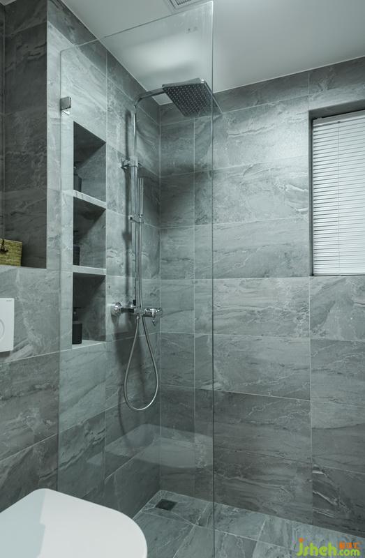 針對(duì)這一塊空間,室內(nèi)設(shè)計(jì)師做了較大的戶型改造處理增加了盥洗間功能,嵌入式馬桶提升生活品質(zhì),壁龕的設(shè)計(jì)讓空間里沒有暴露出的五金掛件,用這個(gè)鏡子看自己,是個(gè)會(huì)發(fā)光的人兒啊
