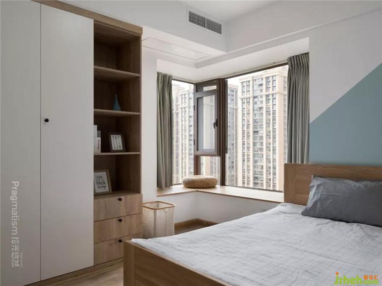 兒童房設計在整體北歐日式簡約風上,著重選擇了色彩飽滿的硬包拼接工藝,防止兒童睡覺時發(fā)生磕碰同時增加童趣感