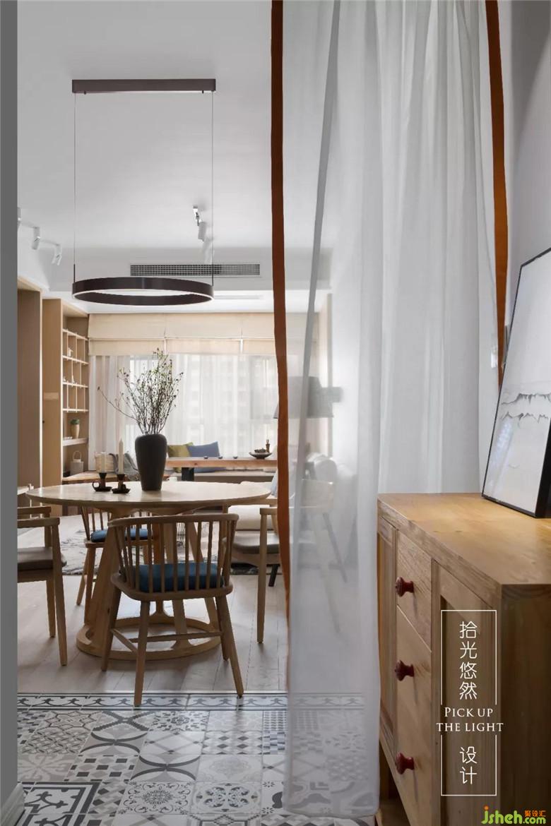 用白紗來作為玄關的隔斷,地面采用花磚作為玄關地面作為空間劃分,其次更易于打理衛(wèi)生