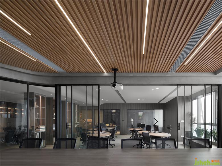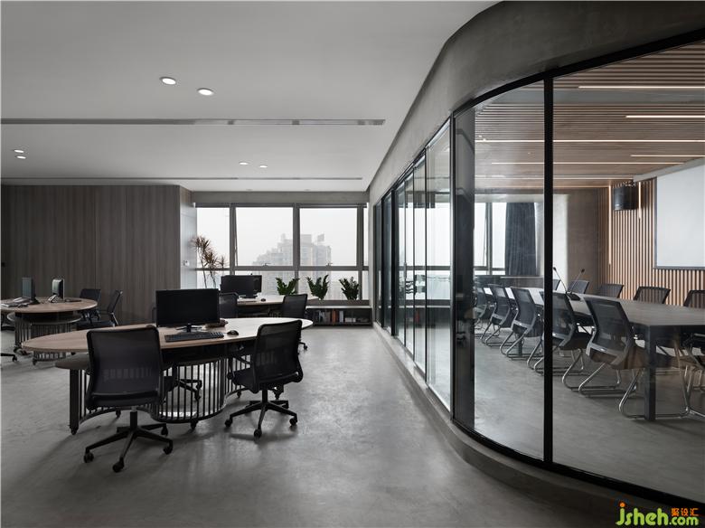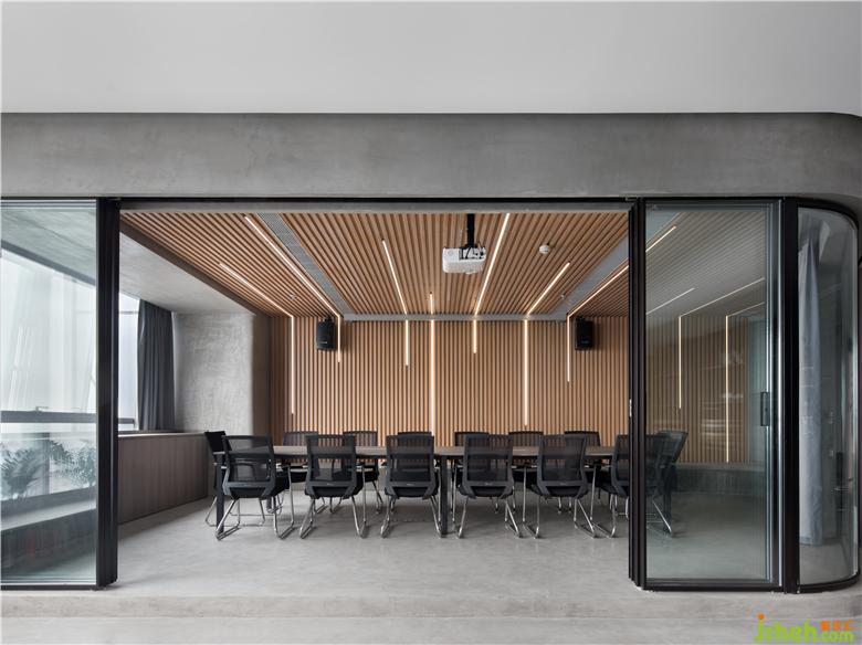 按照傳統(tǒng)的會議室設(shè)計,空間不光會被壓縮到只能用來作為會議室使用再無其他功能性空間,所以使用聯(lián)動門形成一個可封閉可開放的會議空間,需要大規(guī)模會議時可將整個玻璃門打開形成全開放空間,當(dāng)需要進(jìn)行小規(guī)模會議時,則可拉上聯(lián)動門形成封閉空間。辦公室設(shè)計