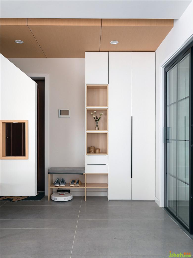 原玄關(guān)空間獨立又封閉,陰暗不合理,且屋主不希望一進(jìn)門就看到餐廳,直觀全室。設(shè)計師為他們做了一個懸空半墻隔斷,去解決原戶型上的缺陷。小姐姐特別提到一個心愿就是 全屋可用掃地機(jī)器人 ,做到無衛(wèi)生死角。為了滿足屋主的心愿,我們把所有需清掃的柜體及角落都按照掃地機(jī)器人的身高量身定制了懸空柜體。
