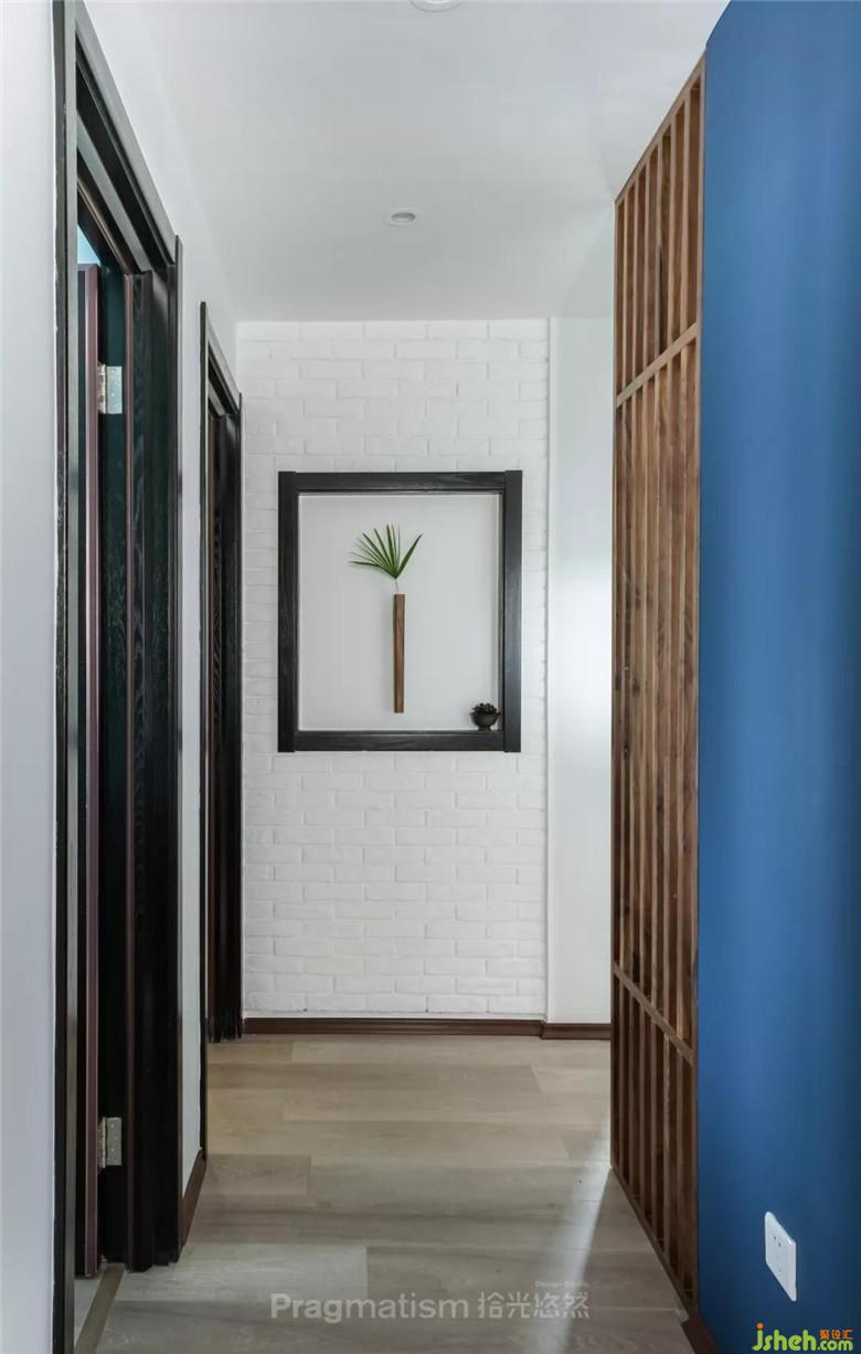進(jìn)門(mén)做了改造,把生活陽(yáng)臺(tái)挪了位置,制作了懸空式玄關(guān)柜,在下面放了小石子和鵝卵石增加氛圍。