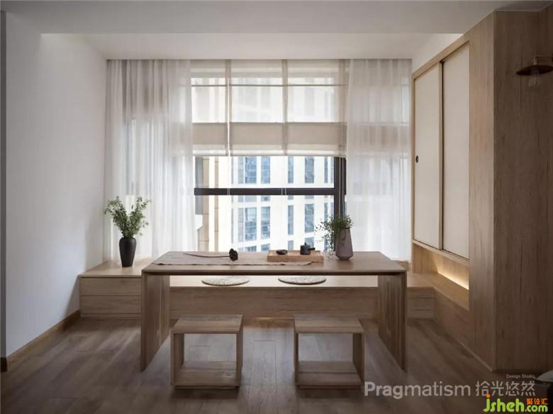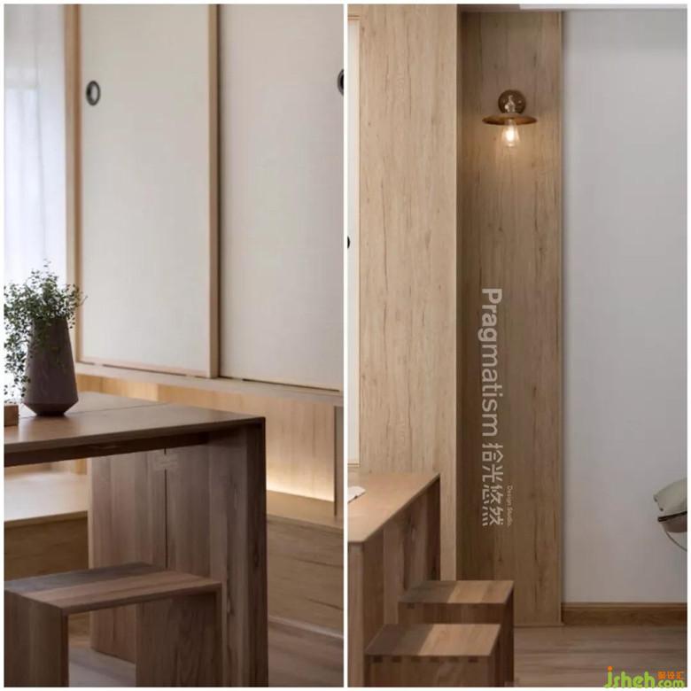 主次臥日式木質(zhì)家具搭配深色背景墻,提高睡眠質(zhì)量降低臥室空間亮度。