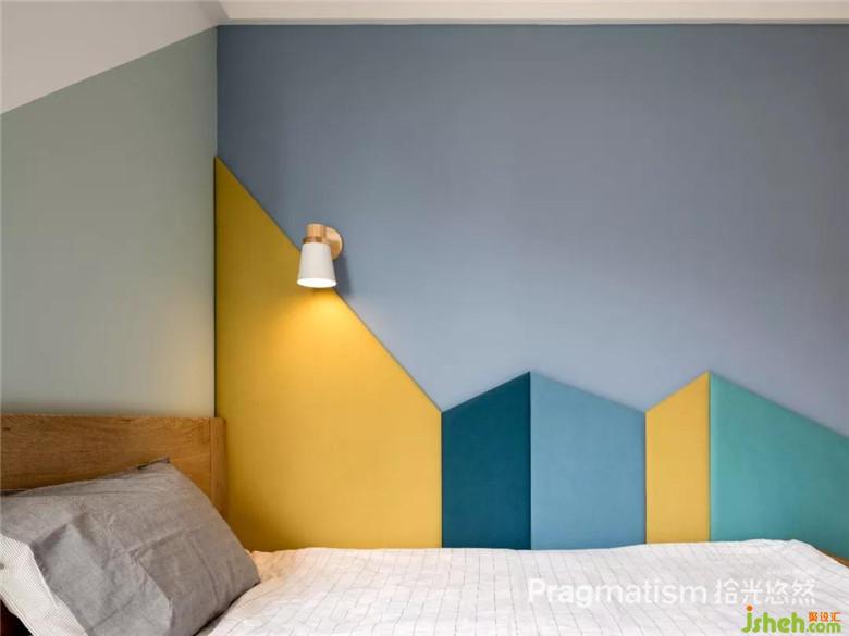 兒童房設(shè)計在整體北歐日式簡約風上,著重選擇了色彩飽滿的硬包拼接工藝,防止兒童睡覺時發(fā)生磕碰同時增加童趣感。