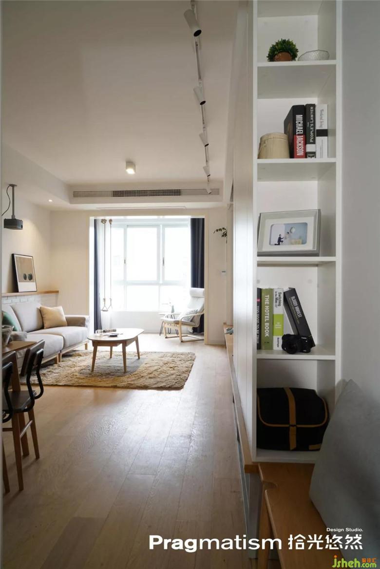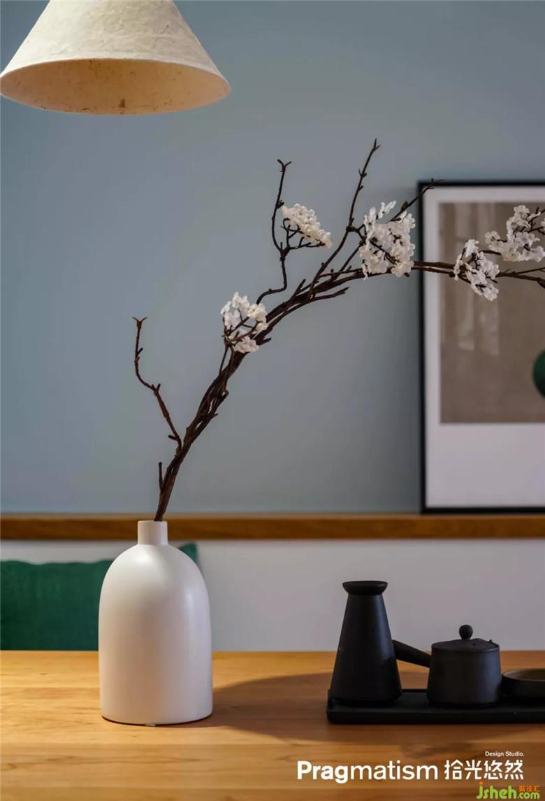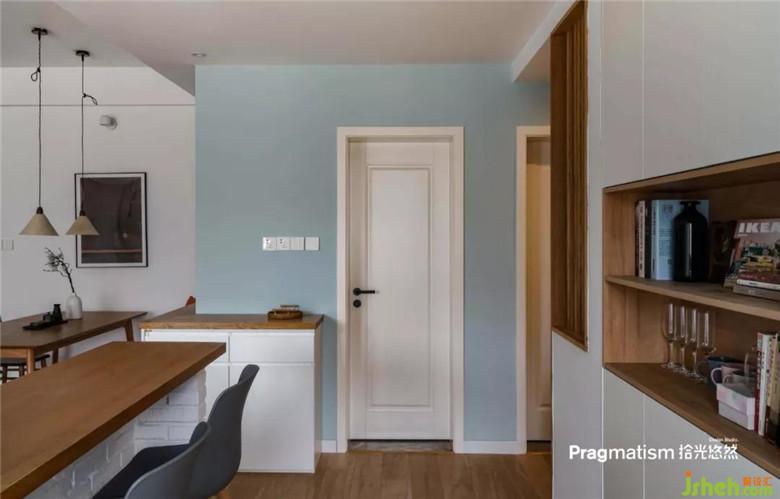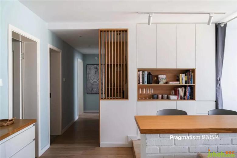 鞋柜側(cè)面做了展示柜,可以放一些喜陰的小植物,收納盒,或隨手放包,將一些美好的瞬間放在這里,開(kāi)門(mén)被幸福迎接。