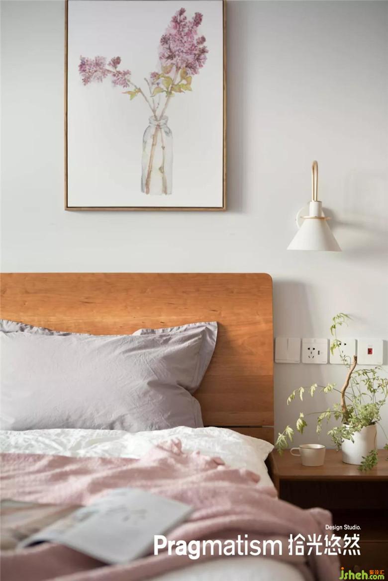 次臥房間地板用的魚骨拼貼法把木地板的好看充分發(fā)揮了出來,收納矮柜增加臥室空間的趣味感,櫻花掛畫應(yīng)景又好看。