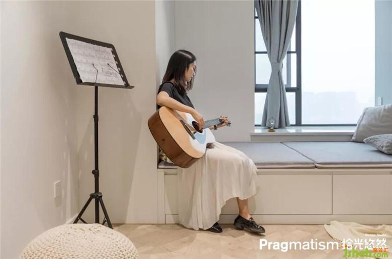 由于日常居住和使用整個空間的人只有牟小姐,所以我們沒有刻意的去打造一間傳統(tǒng)次臥,當(dāng)家里偶而來人時榻榻米就可以作為休息區(qū)使用。