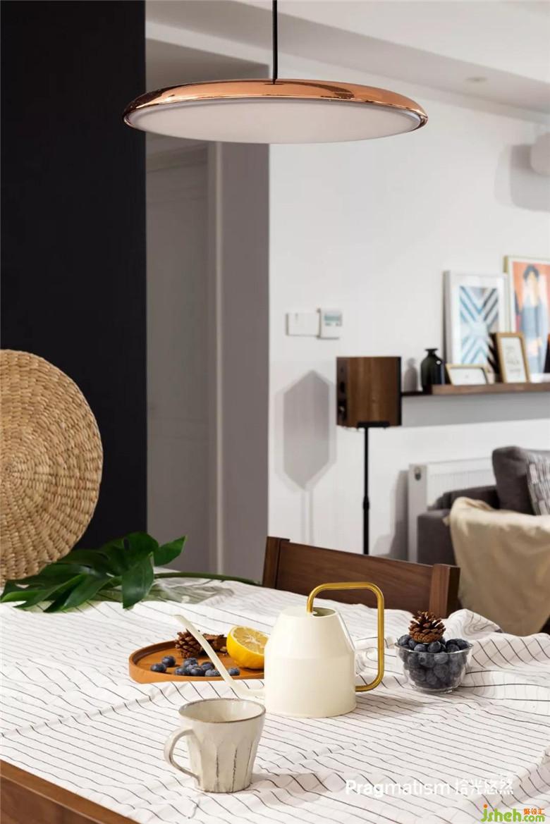 餐廳與廚房結合在了一起,黑色墻是磁力黑板漆,可以用無塵粉筆寫寫畫畫,也可以貼冰箱貼之類的磁鐵物體。