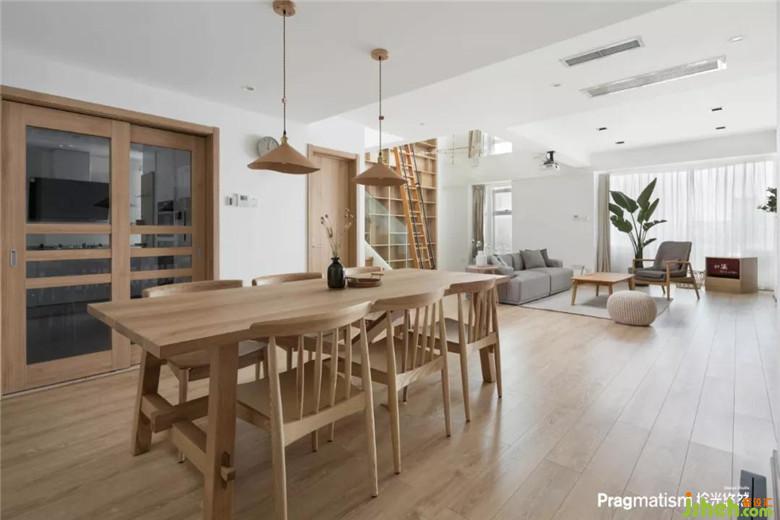 餐廳的位置原本是一個擋在路中間的房間,把墻拆了做成開放式餐廳,不僅能擁有客廳的自然采光,而且空間更寬敞自在了。