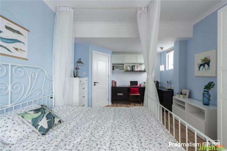 窗幔,讓睡眠多了些許期待,轉(zhuǎn)角的位置,作為書房及梳妝臺(tái)