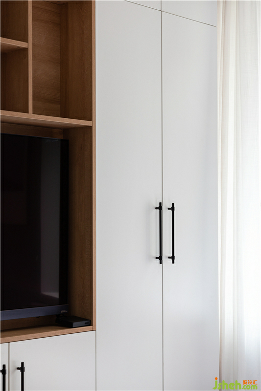 所以盡可能的去做了大面積的柜體,并和電視結(jié)合來(lái)滿足業(yè)主父母的需求。