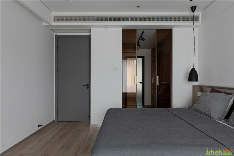 將原始主衛(wèi)空間縮小,以增大衣帽間的面積。同樣的嵌入式推拉門我們運用到了衣帽間,將茶色玻璃作為衣帽間的門面,玻璃的通透讓主臥的每個角落都能沐浴自然光。裝修設(shè)計