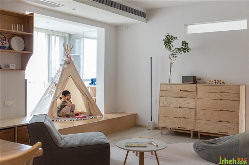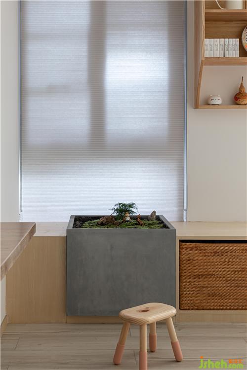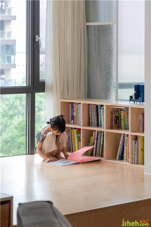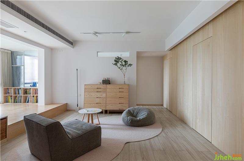 由于屋主對(duì)電視的需求度不高,通過去掉電視和電視墻占用的空間,增加了冰箱放置的空間。同時(shí),冰箱上方考慮了置物的收納盒,可以把不常用的東西收納進(jìn)去。家居裝修
