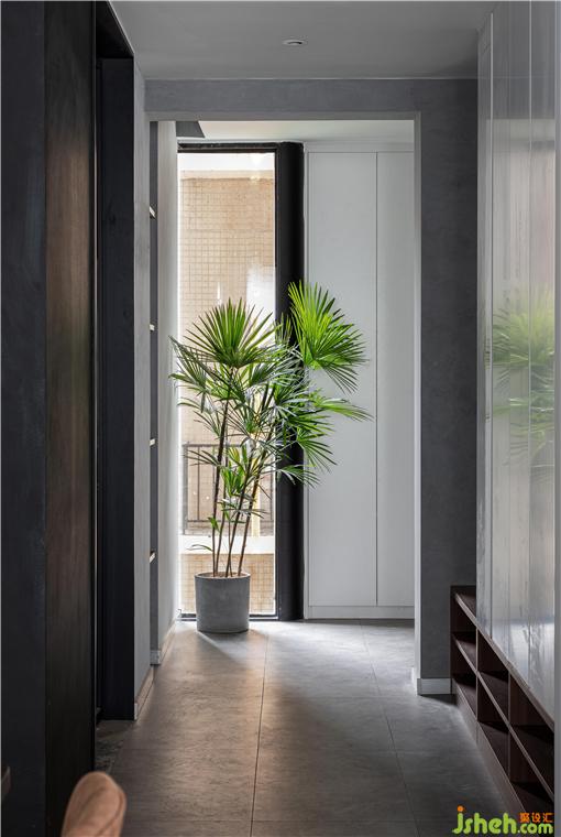 因?yàn)閿U(kuò)充了廚房,所以玄關(guān)相對變小了,通往客廳的過道考慮了鞋柜位置,避免了過道的浪費(fèi),增強(qiáng)了鞋柜的收納。
