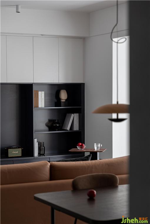 柜子局部考慮了開放格形式處理,既可以作為書籍裝飾品的展示,也讓整個(gè)空間不會(huì)覺得壓抑。