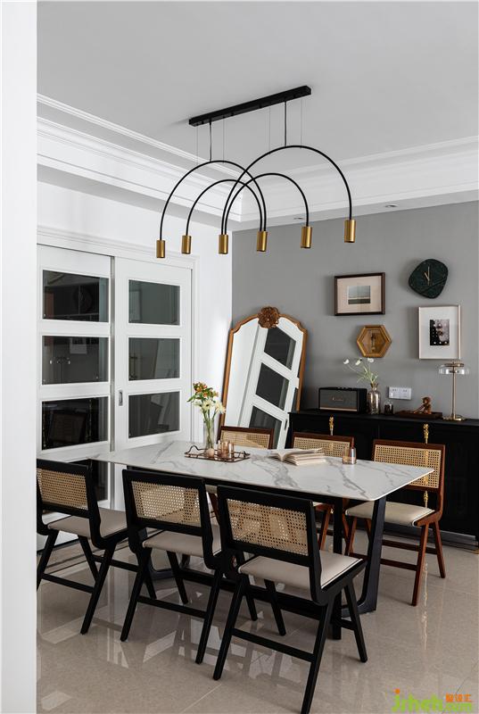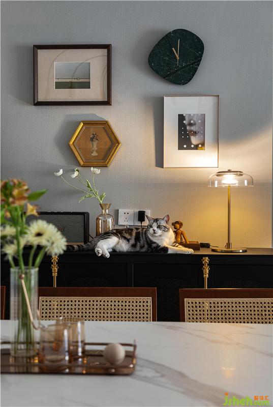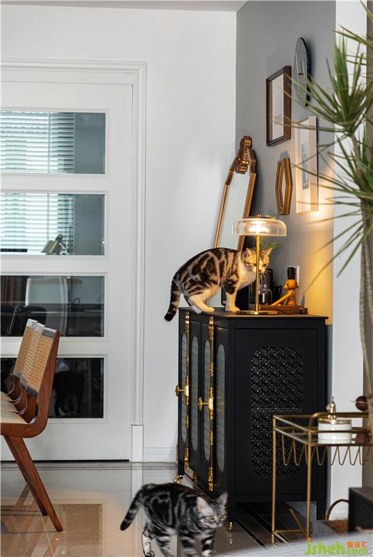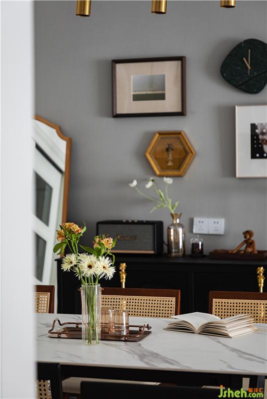 男屋主很喜歡各種手辦和書籍,所以需要一個(gè)空間用來展示和收藏它們。正好利用原有的這個(gè)雞肋空間,打造成了集辦公和儲物為一體的實(shí)用區(qū)域。超長的書桌臺面,加上滿墻的書架,可以把書籍和收集的潮玩手辦都通通收納~整體胡桃木色的柜體和白色木百葉的搭配相得益彰。