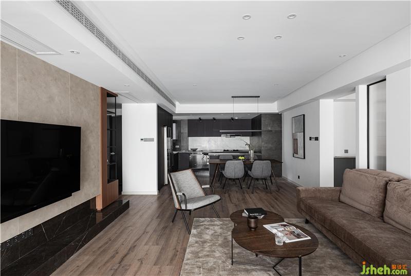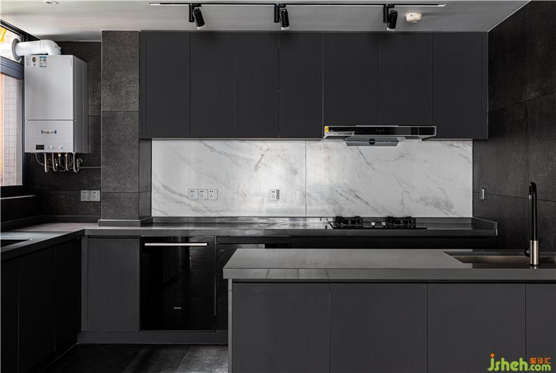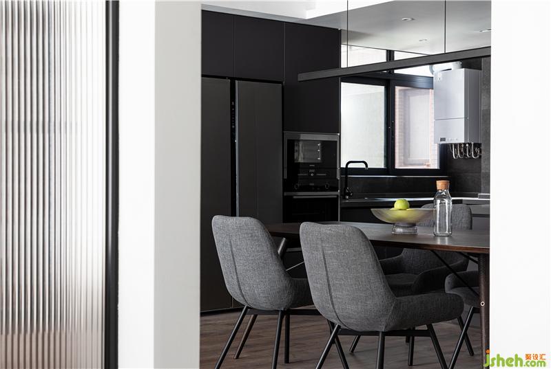 屋主當時告訴我們,希望廚房功能一定要強大,因為使用頻率較高,還需要有類似廚島的功能,女屋主會經(jīng)常做西餐和一些西式甜點。于是,室內(nèi)設計師將其做成開放式廚房,增大空間視覺效果。