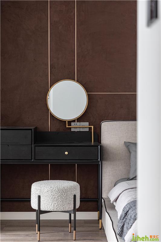 陽臺融入室內(nèi)后,做成了書房區(qū)域與主臥相連,并增大了空間視覺效果和實用性。主臥床頭則采用了金屬線條+硬包飾面作為裝飾,提升了空間的品質(zhì)感。關(guān)于衣帽間,室內(nèi)設(shè)計師將柜體與墻面采用了高低差收口,牢牢落實整個設(shè)計落地的細節(jié)。