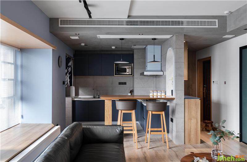 利用玄關至廚房的轉角,將餐廳與廚房進了結合,把餐桌與島臺放在櫥柜上面,一個有儀式感與煙火氣的餐廚區(qū)就這樣誕生了。