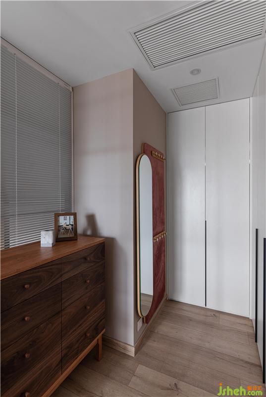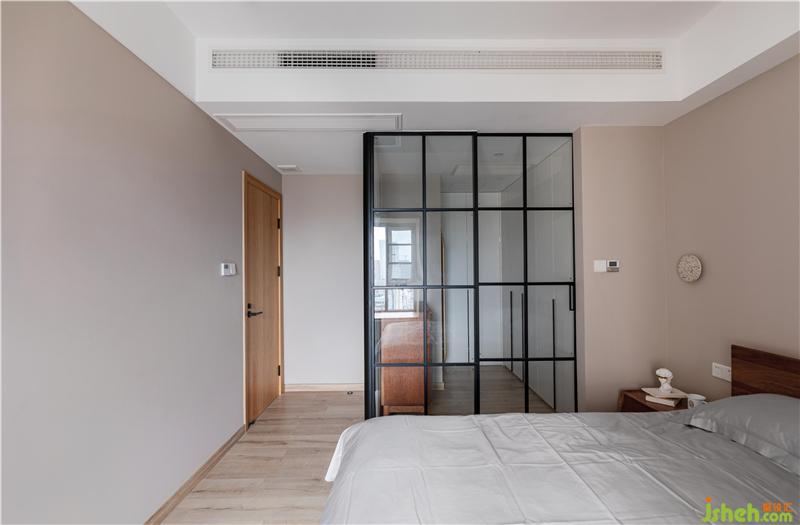 根據(jù)屋主的需求,我們將主衛(wèi)變成了一個(gè)衣帽間,用鐵藝玻璃進(jìn)行了隔斷。