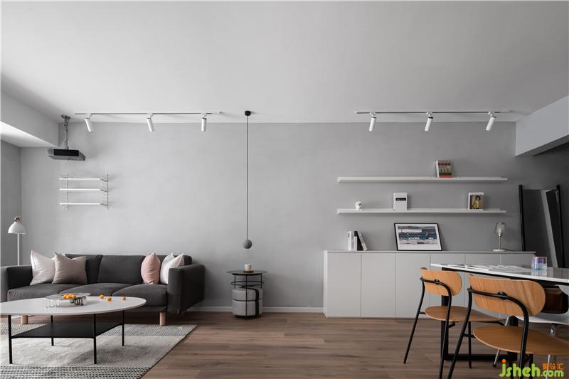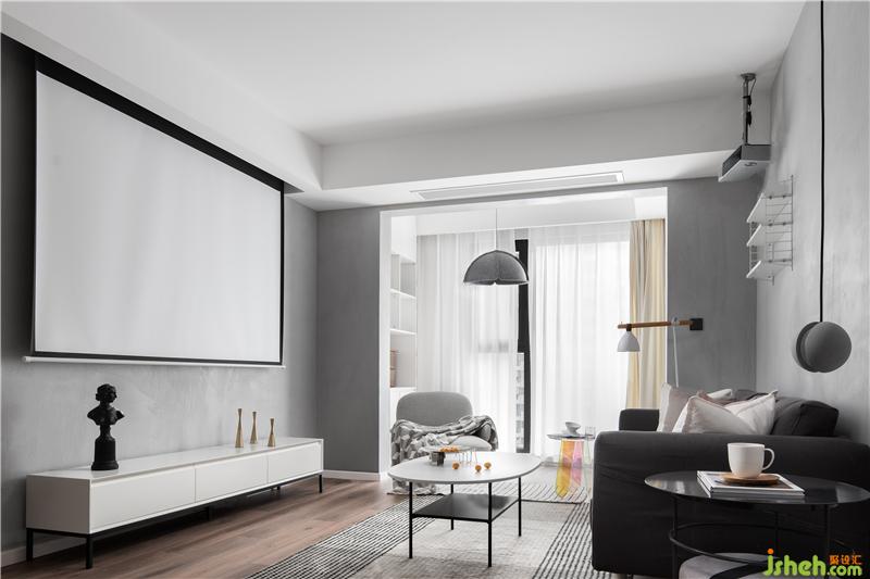 客廳把陽臺(tái)作為閱讀區(qū)一起擴(kuò)入了室內(nèi),同時(shí)也作為客廳的補(bǔ)充座椅,投影儀更適合作為聚會(huì)與獨(dú)享下班時(shí)光的娛樂。