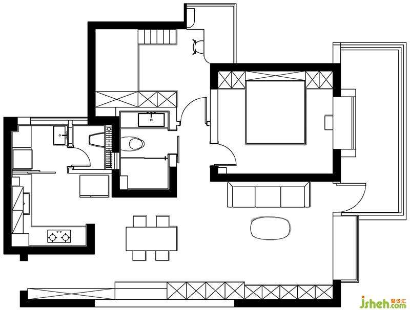 ● 原始戶型分析 1. 生活陽臺較大;客餐廳是單面采光;衛(wèi)生間尺寸較為緊湊。