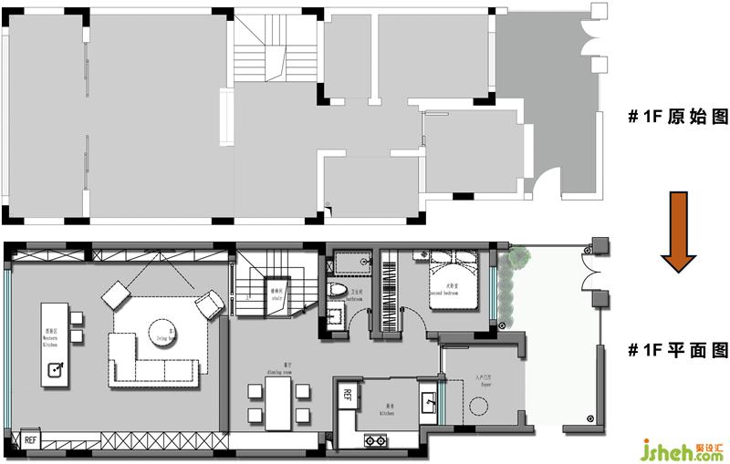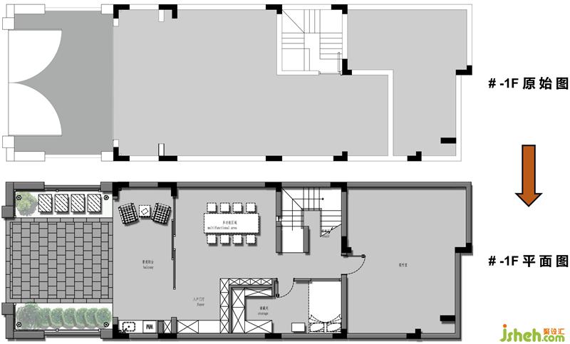 -1樓集合了晾曬功能與休閑娛樂(lè)功能。車庫(kù)作為這套房型主要入戶,是便捷途徑的不二之選,生活的儀式感從踏進(jìn)家門那一刻開始。原來(lái)的-1樓采光特別差,折疊玻璃推拉門打開全屋采光,也讓居住者在視覺(jué)上更通透。
