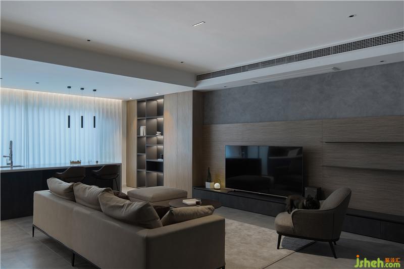 屋主們非常明確自己在色彩上的喜好,灰白棕做主基調(diào),簡(jiǎn)潔理性的空間里利用暖色光源中和冷清感。入住后的他們迎接了一個(gè)新生命 — 黑色法斗碳花入住,從此-1樓有了一方它的小天地,每天歸家時(shí)一定能迎上一雙炙熱且真誠(chéng)的眼睛。