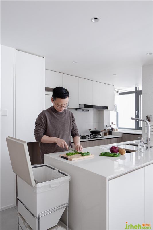 定制櫥柜時(shí)預(yù)留了垃圾桶的“停車位”,選擇了asvel高身分類垃圾桶,備菜時(shí)停在櫥柜旁,高度與櫥柜臺(tái)面相當(dāng),高效便捷處理廚余垃圾。