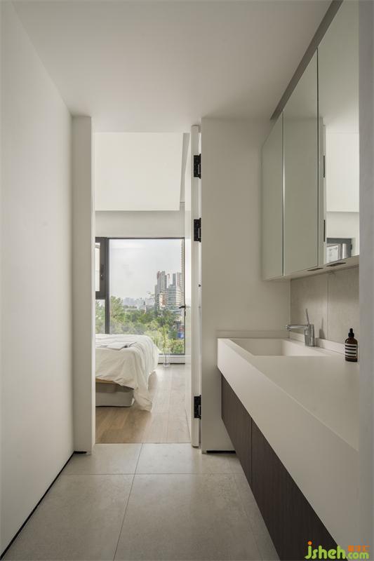 原始狹長型廚房可以算是毫無采光,因此選擇通透性較強(qiáng)的材質(zhì)和提升亮度的白色作為空間主旋律。