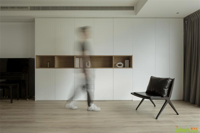 家居裝修利用左手邊整面墻設(shè)計(jì)的收納柜,對(duì)于常住人為4-5人的鞋品收納量是綽綽有余的。