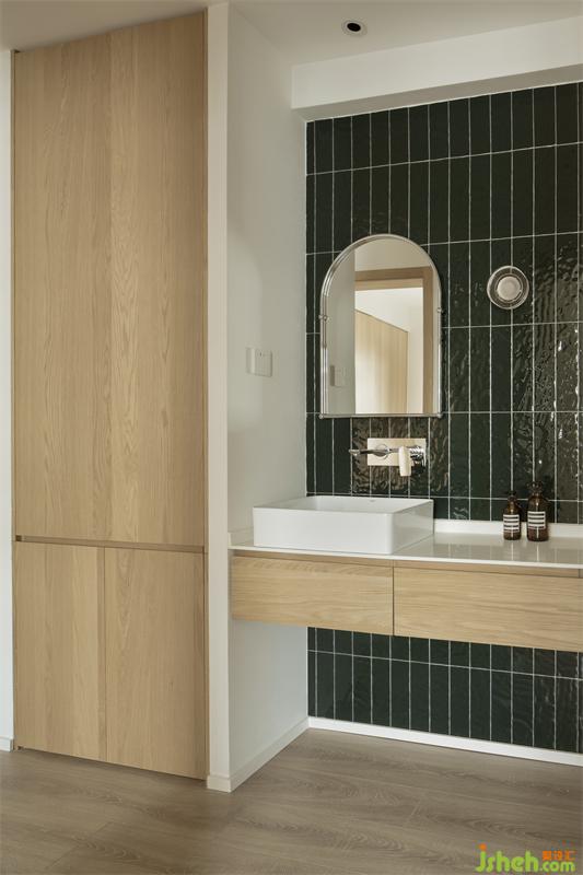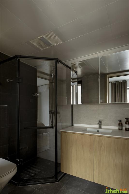 移位的門洞巧妙地緩解了次衛(wèi)的壓力,將原次衛(wèi)的所有功能剝離部分功能出來,僅保留淋浴和入廁功能,將洗漱功能放置在原主臥進門處,利用多出來的空間增加家政柜。