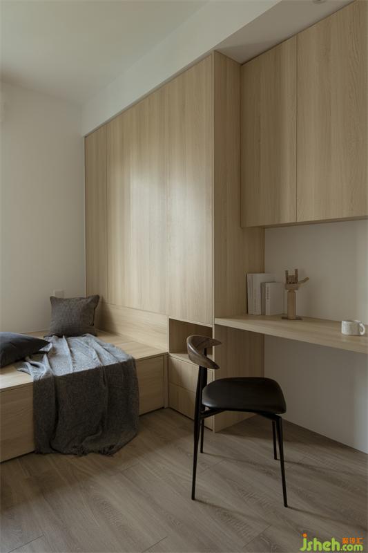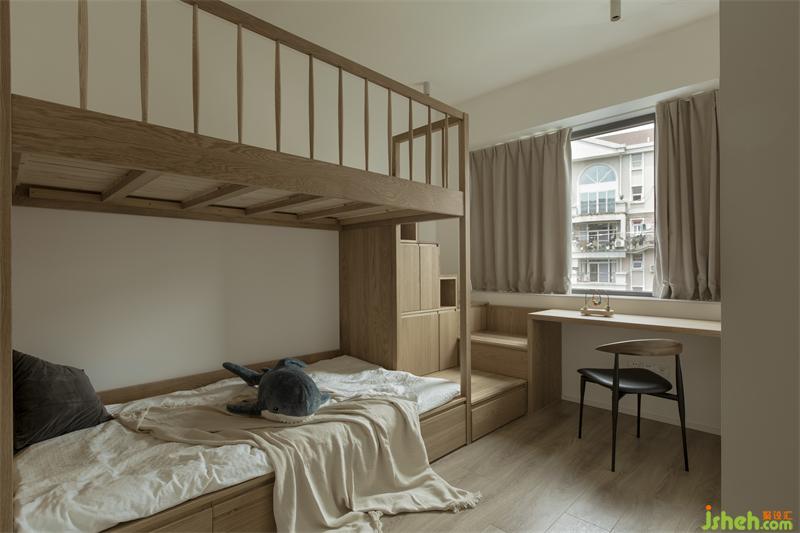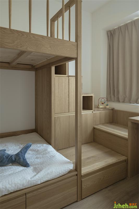 孩子的成長都離不開大人陪伴的過程,而屋主家的小朋友剛?cè)胗變簣@,高低床也適合大人晚間的照顧與陪伴,上下床的踏步為小朋友成長所需的收納提供更多的空間。